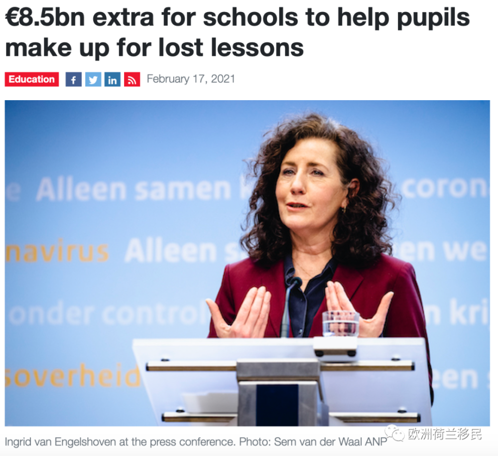 据当地媒体报道,荷兰政府将会拨款85亿欧元作为对抗新冠疫情影响的教育补贴计划,补贴范围覆盖从小学、中学、大学到特殊学校的所有学校类型。