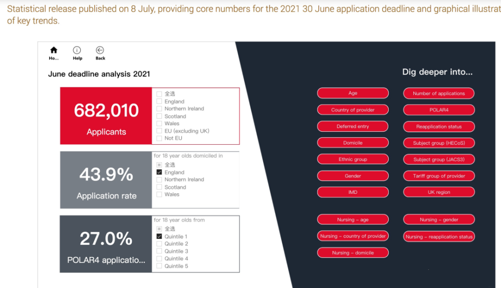 注意,由于该统计仅截止到6月30日前通过UCAS提交的申请,一些凭借高考成绩申请英国本科、以及直接向英国大学提交申请的中国学生,并没有被算进去。