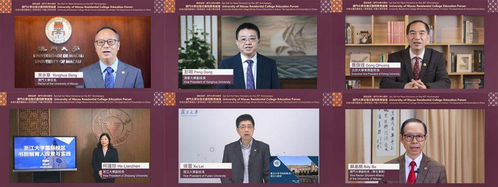 澳门大学于12月6日举行书院教育论坛之“住宿式书院实践全人教育理念:中国大学的探索"暨新书发行仪式。清华大学、北京大学、浙江大学、复旦大学与澳门大学的领导在线发表了对高校现代书院制教育的真知灼见。同场还发布了叙述澳大书院理念与设施的新书。