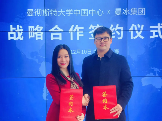 2021年12月10日,曼冰集团孙冰博士一行到访曼彻斯特大学中国中心,曼大中心主任、国际教育中国区总裁傅潇霄女士对孙冰博士一行的到来表示热烈欢迎。双方在深度交流后签署了战略合作协议,今后将本着“深度互信、战略协同、资源互通、互利共赢”的原则,以开放创新的形式在碳中和科研成果转化、产业人才培养、产业数字化转型等领域展开全面深入的合作,打造国家“双碳”战略的中英桥梁。