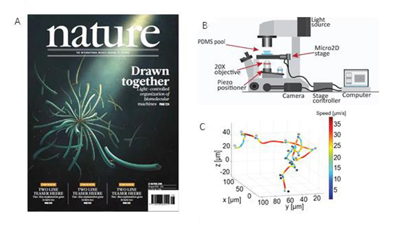屈子杰课题组的研究涉及流体力学、生物力学、物理学、工程学、计算机科学和应用数学等多个领域,着眼于通过先进的实验手段,探索微尺度下生物系统内的物理学,流体力学和生物力学问题,如细菌游动、集群行为、细胞间/细胞内的物质运输等。从不同的生物过程中获得启发,设计和制造用于生物医学和工程的仿生微纳机器人,微流体装置和软材料等。