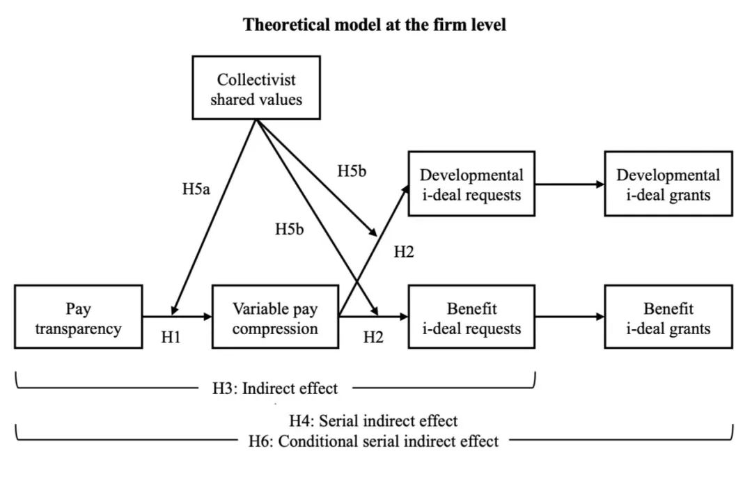 该项研究通过线上的商业模拟实验和在111间医疗器械分销企业中进行的调查研究,发现薪酬透明化与管理者压缩员工之间的浮动薪酬(Variable pay compression)相关。同时,薪酬透明化通过浮动薪酬压缩对个性化契约(I-deals)产生积极的间接影响。此外,在集体主义共同价值观(Collectivist shared values)较强的企业中,上述所观察到的间接影响效应会增强。如果薪酬透明化成为一个动态目标(Moving target),也就是透明化政策只是将企业内部的员工薪酬差距从一种容易被观察到的形式转移到另一种不易被观察到的形式的话,则不利于发挥员工的监督作用,也无法促使企业正视薪酬不公的现象。