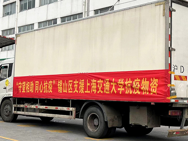4月16日下午,一辆满载着生活物资和医疗防护用品的货车从江苏省无锡市锡山区出发,开往上海。晚上九点半,货车抵达上海交通大学闵行校区。