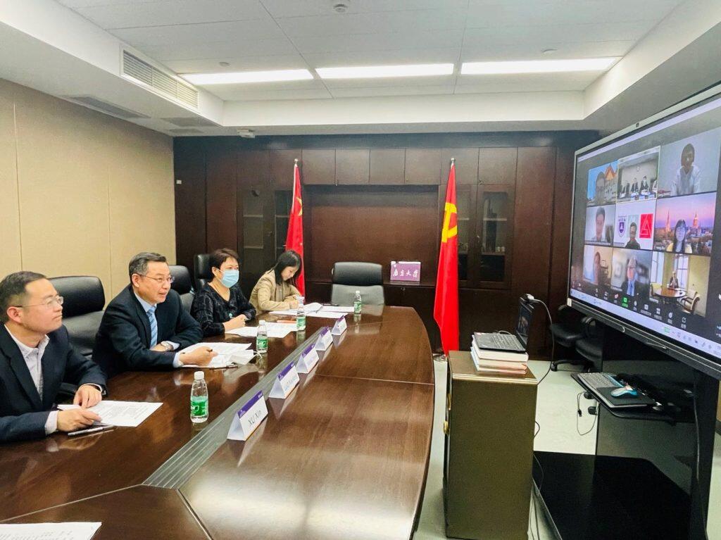北京时间4月20日晚,南京大学副校长王振林应邀与美国圣母大学副校长裴品哲(Michael Pippenger)交流,双方通过远程视频形式进行了友好会谈。美国圣母大学国际事务办公室、圣母大学北京中心,以及南京大学国际处和建筑学院相关工作人员与会。