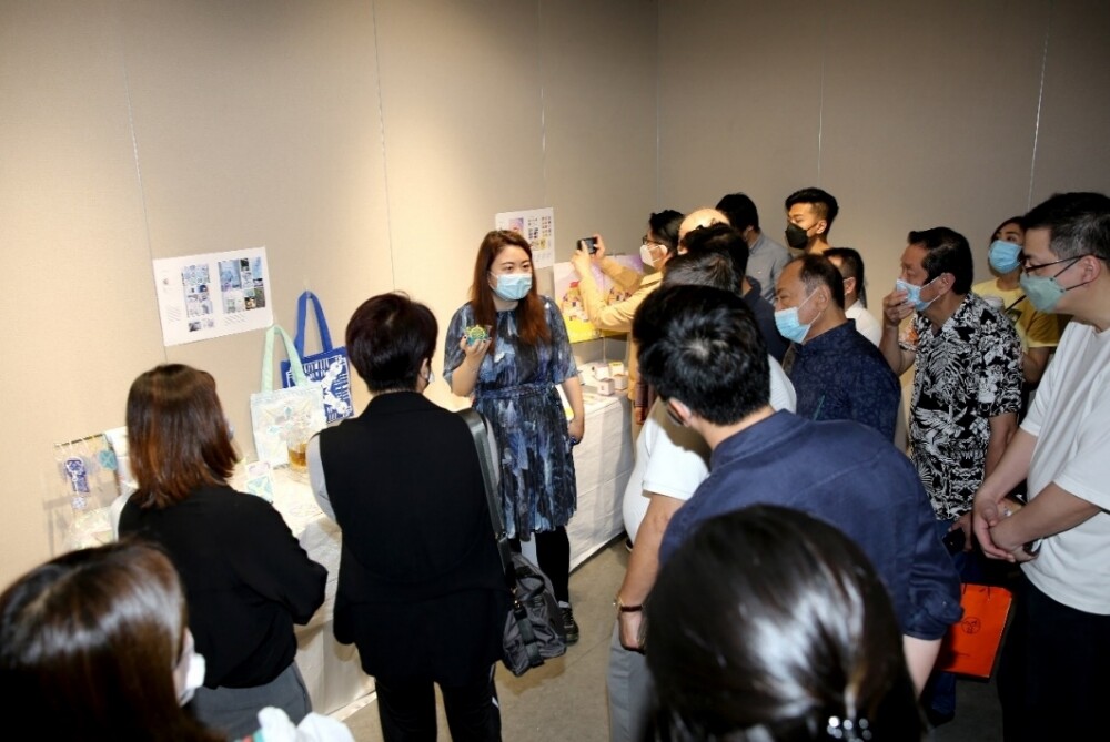 来访一行先参观人文艺术学院毕业创作展,本次展出的毕业设计作品包括以澳门为主题的文创产品、包装、瓷器等,黄光辉课程主任及参展毕业生为嘉宾们介绍作品及交流,气氛热烈。