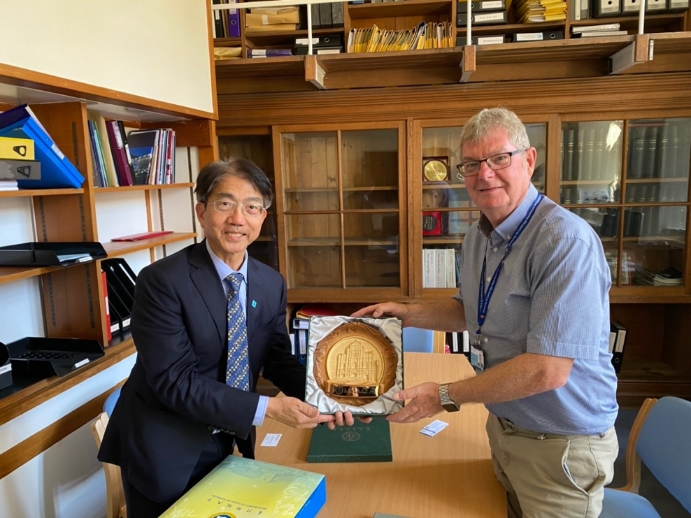 7月11日,李校长到访剑桥大学,首先参观了剑桥大学数学物理系,随后前往剑桥大学校行政楼拜会剑桥大学副校长、英国皇家工程院院士David Cardwell,他是剑桥大学超导工程领域的专家,同时负责大学战略规划。李校长介绍了澳科大近年的发展,尤其是在工程科研领域的突破,希望今后两校可以就共同的优势学科展开科研合作。