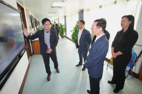 全国劳动模范和大国工匠代表团先参观了澳科大的「科技之光 航天之梦」特展,由陈副主席介绍澳科大的发展史及现况,就大学的建校历史、近年发展及未来愿景进行概述。