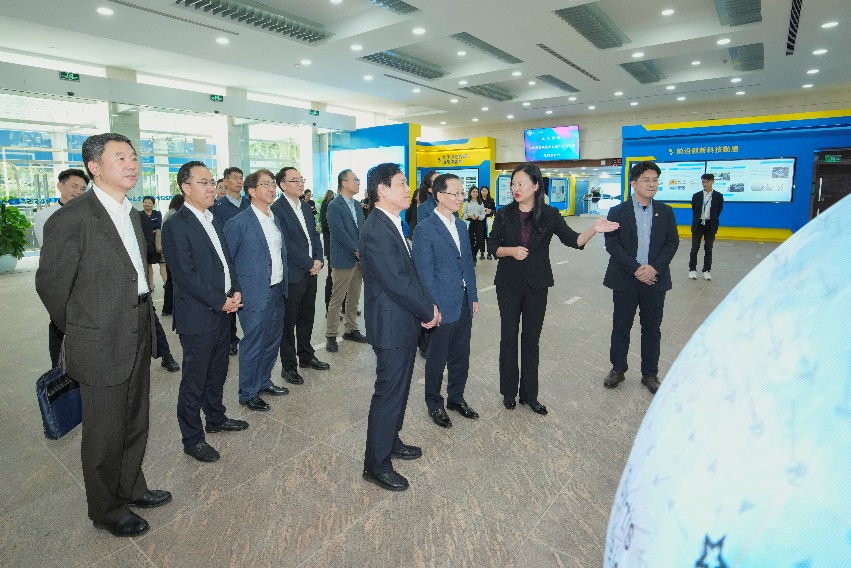 随后,代表团前往月球与行星科学全国重点实验室,何副主任为嘉宾们介绍了实验室的各先进设施及研究工作,更重点分享了「澳科一号」卫星的情况及实验室主要参与的科研内容,让代表团了解实验室涵盖的多个前沿研究领域。双方就此进行了亲切交流。