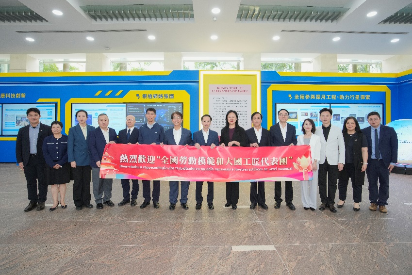 全国劳动模范和大国工匠代表团于2025年10月24日莅临澳门科技大学,副校监、校长李行伟,校董会副主席兼秘书长陈季敏,人力资源处处长郭美芝及月球与行星科学国家重点实验室副主任、太空科学研究所副所长何兆国热情接待来访嘉宾。